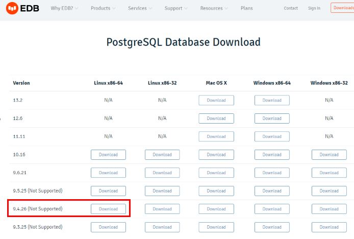 내가 필요한 버전은 PostgresSQL 9.4 였으므로 9.4.26 > Linux x86-64 를 다운받았다.