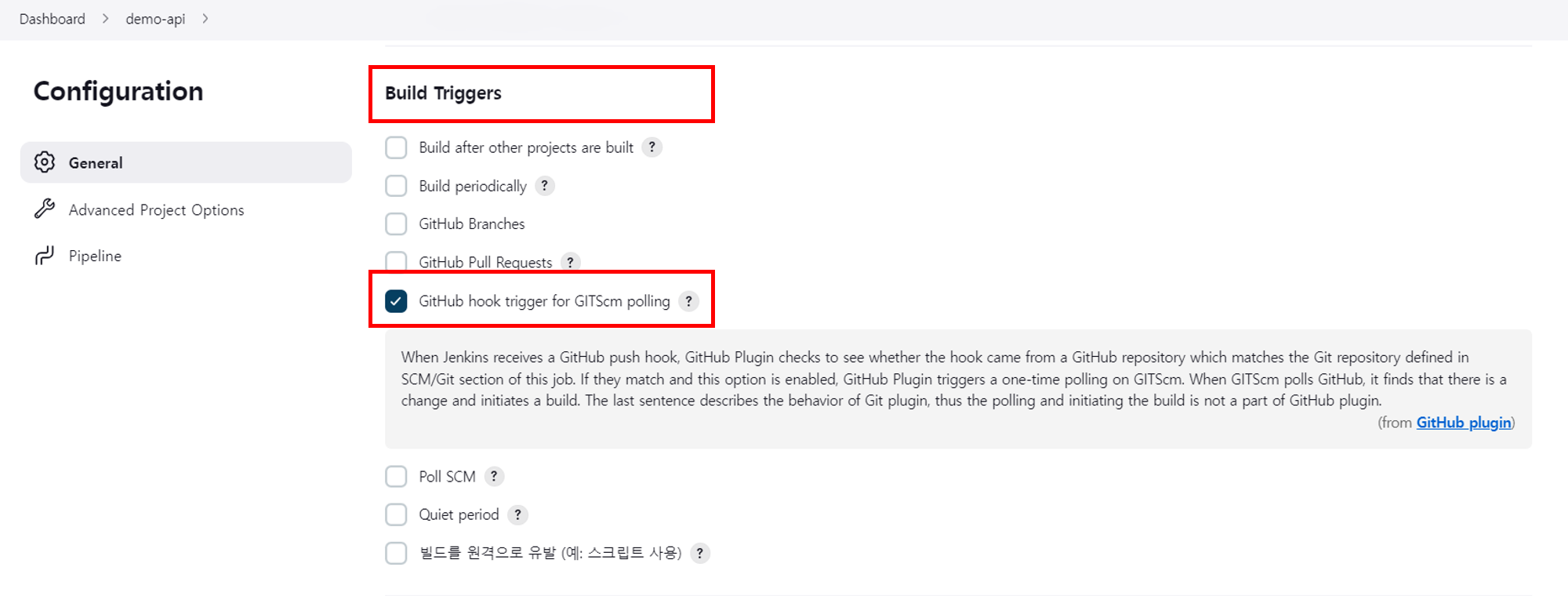 GitHub hook trigger for GITScm polling 체크